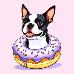 TThis Boston in a Donut sticker showcases an adorable Boston Terrier nestled inside a vibrant donut design, combining charm and whimsy in one vinyl decal. Measuring approximately 3 inches tall, it is crafted from high-quality, water-resistant vinyl to ensure lasting durability in various conditions. Choose between a sleek glossy finish to highlight vivid colors or a unique sparkle laminate to add an eye-catching shimmer. Perfect for personalizing laptops, water bottles, or notebooks, this sticker offers both style and resilience for everyday use.