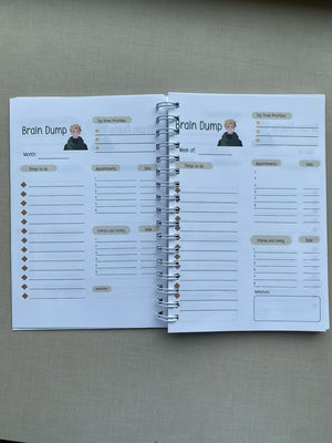 Brain Dump is a journal/planner designed to help individuals clear mental clutter and organize their thoughts effectively.