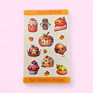 Celebrate the charm of autumn with the Kawaii Fall Foods collection, crafted from premium vinyl for lasting quality. Designed with durability in mind, these stickers feature a glossy or glitter laminate finish, enhancing both their vibrant colors and resistance to wear. Water-resistant properties ensure they maintain their playful appeal through seasonal changes, making them ideal for decorating planners, scrapbooks, or personal items with a touch of fall-inspired delight.