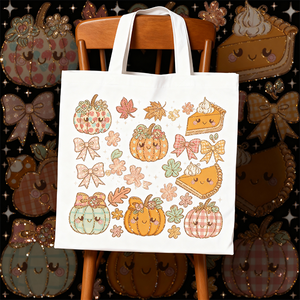 Embrace the cozy spirit of fall with the Pumpkin and Pie Tote, a charming canvas bag perfect for carrying your essentials. Featuring delightful pumpkin and pie designs, this reusable tote combines festive fun with practicality. Made from durable, machine-washable canvas, it offers long-lasting use and easy care. Ideal for seasonal outings or everyday errands, this tote balances style and sustainability effortlessly.